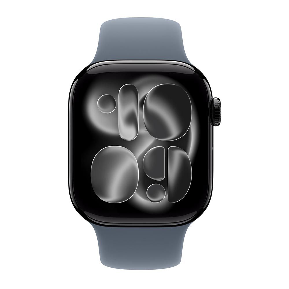 Apple Watch Series 11 46mm Aluminum Jet Black Case Anchor Blue Sport Band S/M